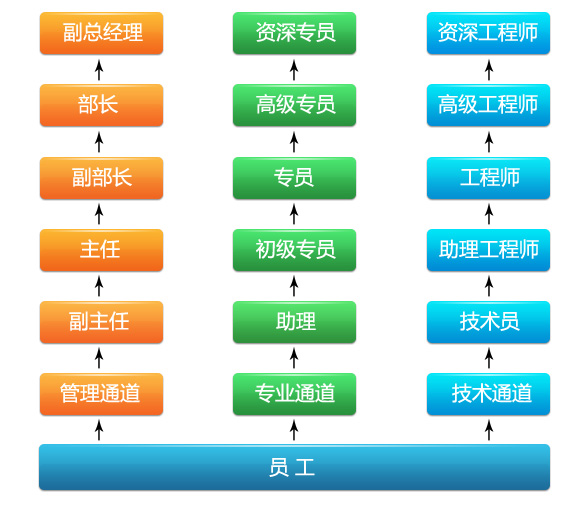 无论对公司或是员工而言,职业发展管理都至关重要。员工是企业最宝贵的财富,是创新的源泉。公司为员工建立了完善的晋升通道。将员工个人的职业生涯与公司的发展相结合,实现了公司可持续发展与员工职业生涯发展的"双赢"。