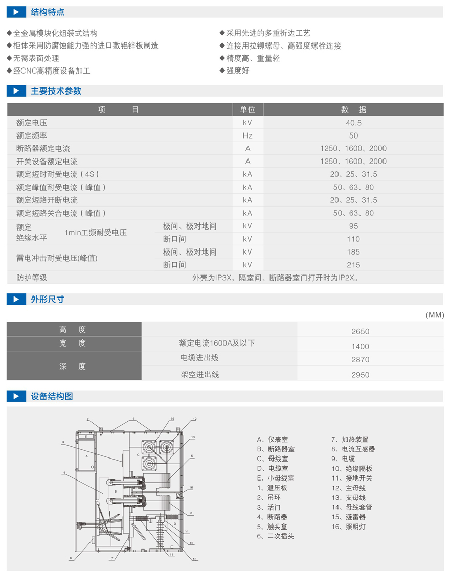 产品总汇|KYN61-40.5(Z)型铠装移开式交流金属封闭开关设备