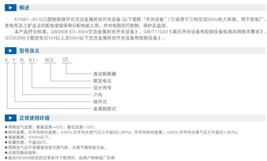 KYN61-40.5(Z)型铠装移开式交流金属封闭开关设备