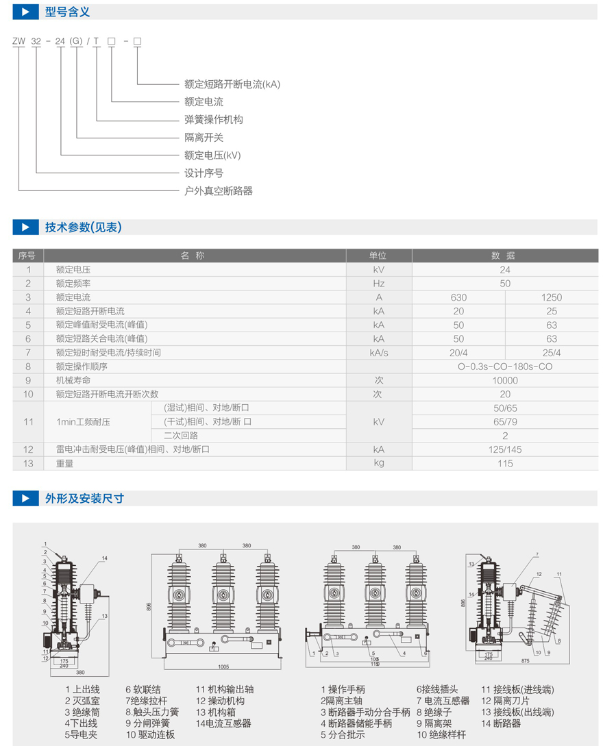 ZW32ABG-12户外永磁式高压交流真空断路器
