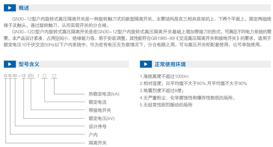 产品总汇|GN30-12户内旋转式高压隔离开关