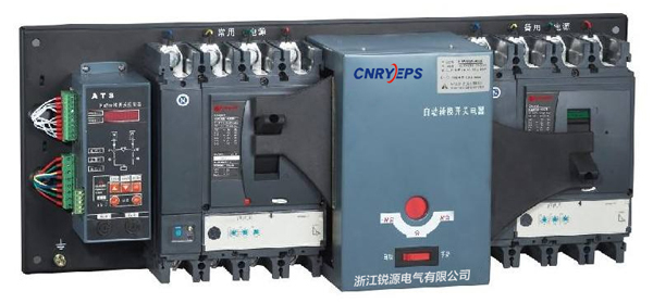 无论常用电源和备用电源有无电压,均可采用手动操作方式。手动操作时,应将手动--自动按钮置于手动位置,当推动手柄顺时针转至终端时,备用电源执行断路器Qr分闸,常用电源执行断路器Qn合闸;当推动手柄逆时针转至终端时,备用电源执行断路器Qr合闸,常用电源执行断路器Qn分闸;面板中电源指示灯指示自动控制盒工作电源,若该灯不亮,说明自动控制盒工作电源有故障,不能操作开关。待修复正常后,将手动--自动按钮置于自动位置,如果常用电源供电正常,转换开关将转到常用电源供电,面板中常用电源指示灯亮;如果常用电源供电不正常,则转换开关将转到备用电源供电,面板中备用电源指示灯亮。转换开关设有两只1A的熔断器和一只接线端子,熔断器作为自动控制器短路保护用。接线端子则为指示信号灯接至控制箱面板提供有源电源,其电压为交流220V,电流为150mA,其中具体操作可参考随机附带的说明书线路图进行连接。