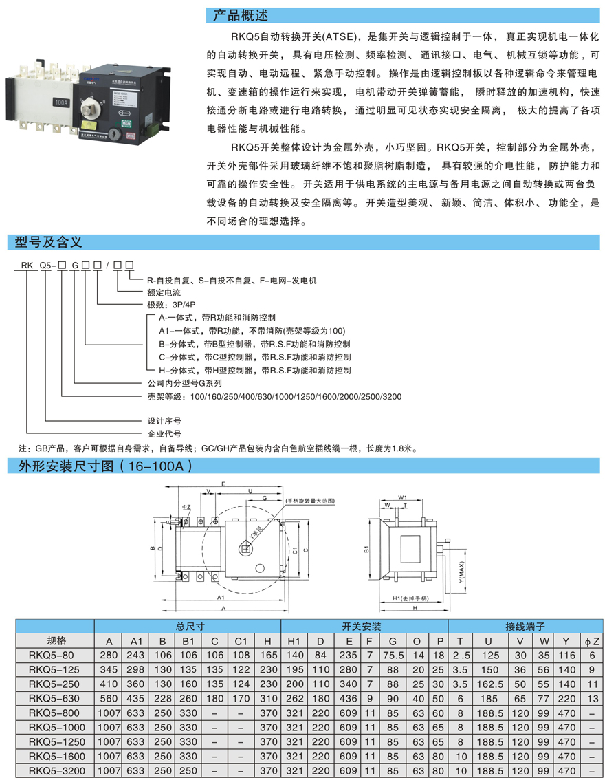 产品总汇|RKQ5-4P100A双电源(隔离型)双电源开关