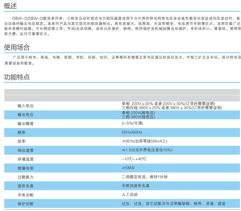 产品总汇|DBW-D系列数显式单、三相全自动补偿电力稳压器