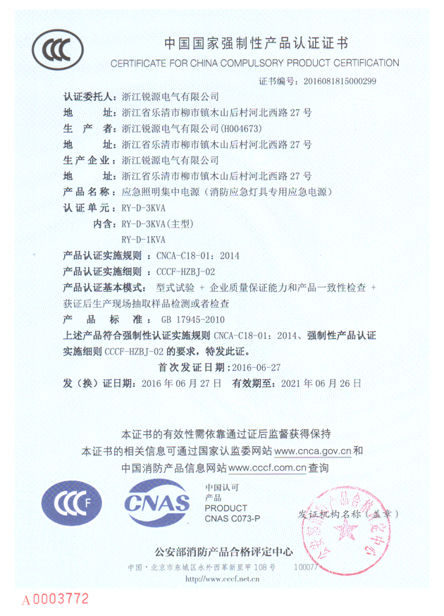 RY-D-1/3KVA应集照明集中电源(CCC认证)