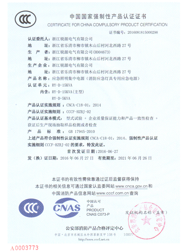 RY-D-5/15KVA应集照明集中电源(CCC认证)
